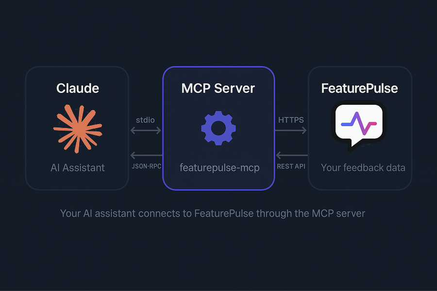 The Model Context Protocol (MCP) is an open standard that lets AI assistants connect to external tools and data sources. With the FeaturePulse MCP server, your AI assistant gets direct access to your feature request data — no copy-pasting, no context switching.